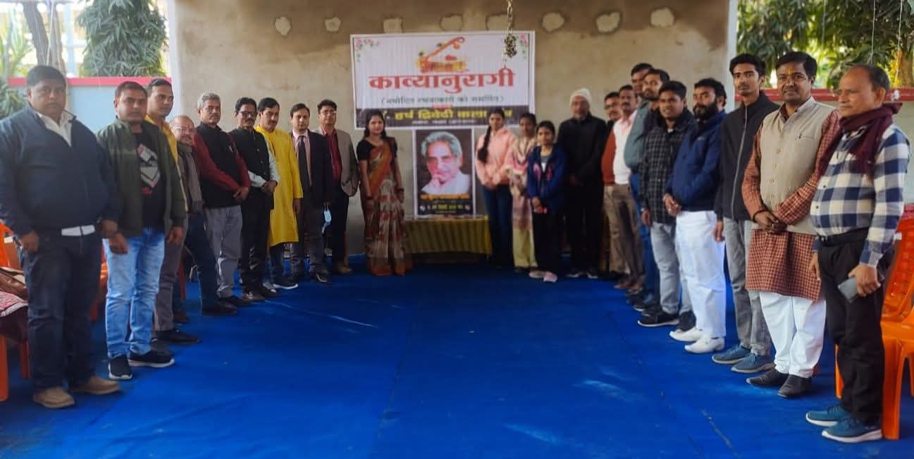 गढ़वा। कला एवं समाज सेवा को समर्पित संस्था पंडित हर्ष द्विवेदी कला मंच, नवादा (गढ़वा) के तत्वावधान में नवोदित रचनाकारों को समर्पित मासिक कार्यक्रम ‘काव्यानुरागी’ का आयोजन बंधन मैरिज हॉल, नवादा मोड़ (गढ़वा) में किया गया। कार्यक्रम पद्म भूषण गोपालदास नीरज की जन्मशताब्दी को समर्पित रहा।