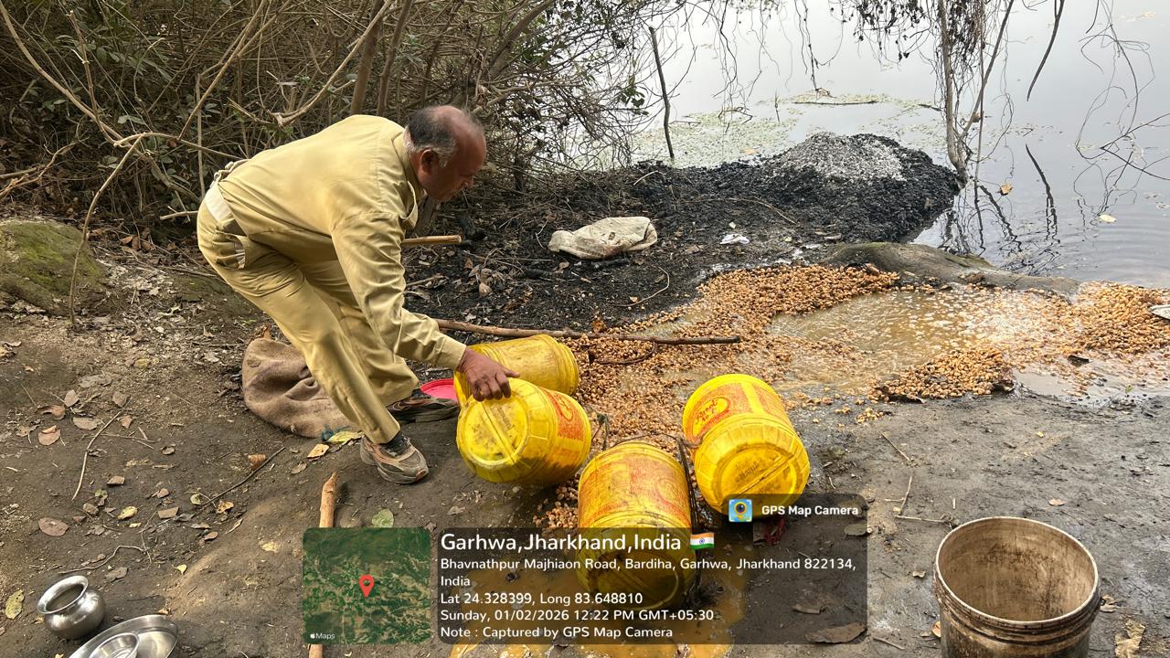 बरडीहा पुलिस की बड़ी कार्रवाई, अवैध महुआ शराब के खिलाफ छापेमारी, 50 किलो महुआ नष्ट